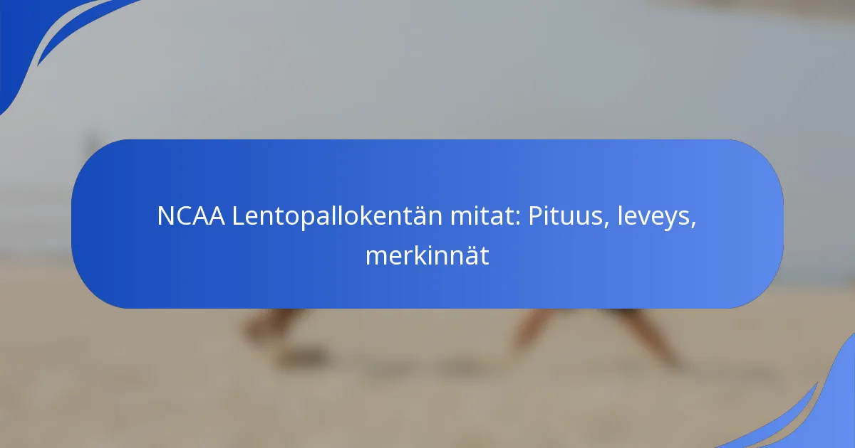 NCAA:n viralliset mitat lentopallokentälle ovat 18 metriä pituudeltaan ja 9 metriä leveydeltään, mikä varmistaa pelin johdonmukaisuuden kilpailuissa. Kentällä on erityiset merkinnät, jotka määrittelevät pelielementit ja pelaajien sijoittumisen, ja nämä ovat olennaisia sääntöjen noudattamiseksi ja suorituskyvyn optimoimiseksi.