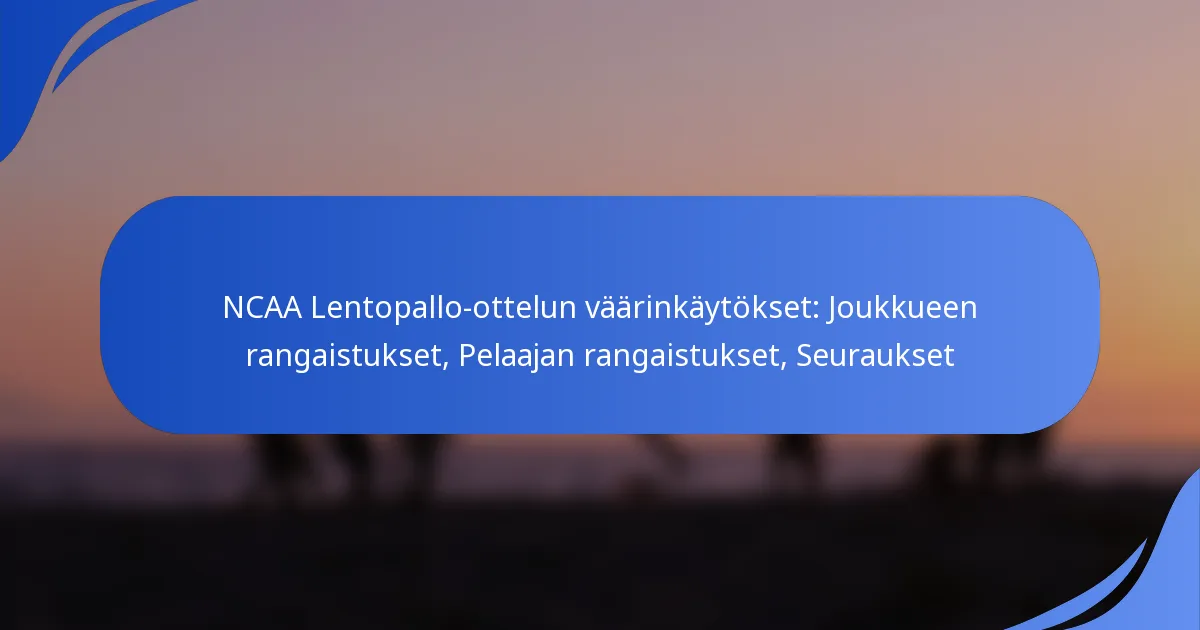 Laittomat osumat NCAA:n lentopallossa voivat johtaa useisiin rangaistustyyppeihin, mukaan lukien pistevähennykset, sivuheitot ja syötön menettäminen. Yleisiä rikkomuksia ovat verkon rikkomukset, yliulottuminen ja laittomat hyökkäykset. Jokaisella rikkomustyypillä on erityiset seuraukset, jotka voivat muuttaa ottelun kulkua.