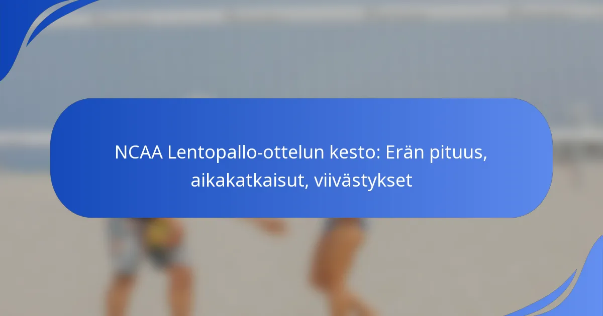 NCAA:n lentopallo-ottelun keskimääräinen kesto vaihtelee tyypillisesti 90-120 minuutin välillä. Tämä aikaraja sisältää kaikki erät, aikalisät ja mahdolliset viivästykset, mikä heijastaa pelin dynaamista luonteen.