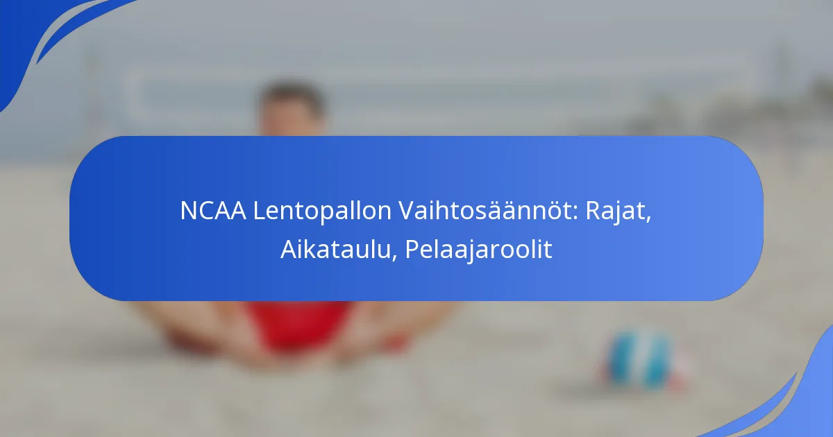 NCAA:n lentopallon vaihtoasetukset määrittelevät erityiset olosuhteet, joissa pelaajia voidaan vaihtaa otteluiden aikana, varmistaen pelin sujuvuuden samalla kun mahdollistetaan pelaajaroolien strateginen hallinta. Vaihtoja sallitaan pääasiassa pelin keskeytyksissä, mikä vaatii valmentajilta taktisia päätöksiä pelaajien tehokkuuden optimoimiseksi. Näiden sääntöjen ymmärtäminen on ratkaisevan tärkeää joukkueille, jotta ne voivat noudattaa sääntöjä ja parantaa kokonaissuoritustaan.